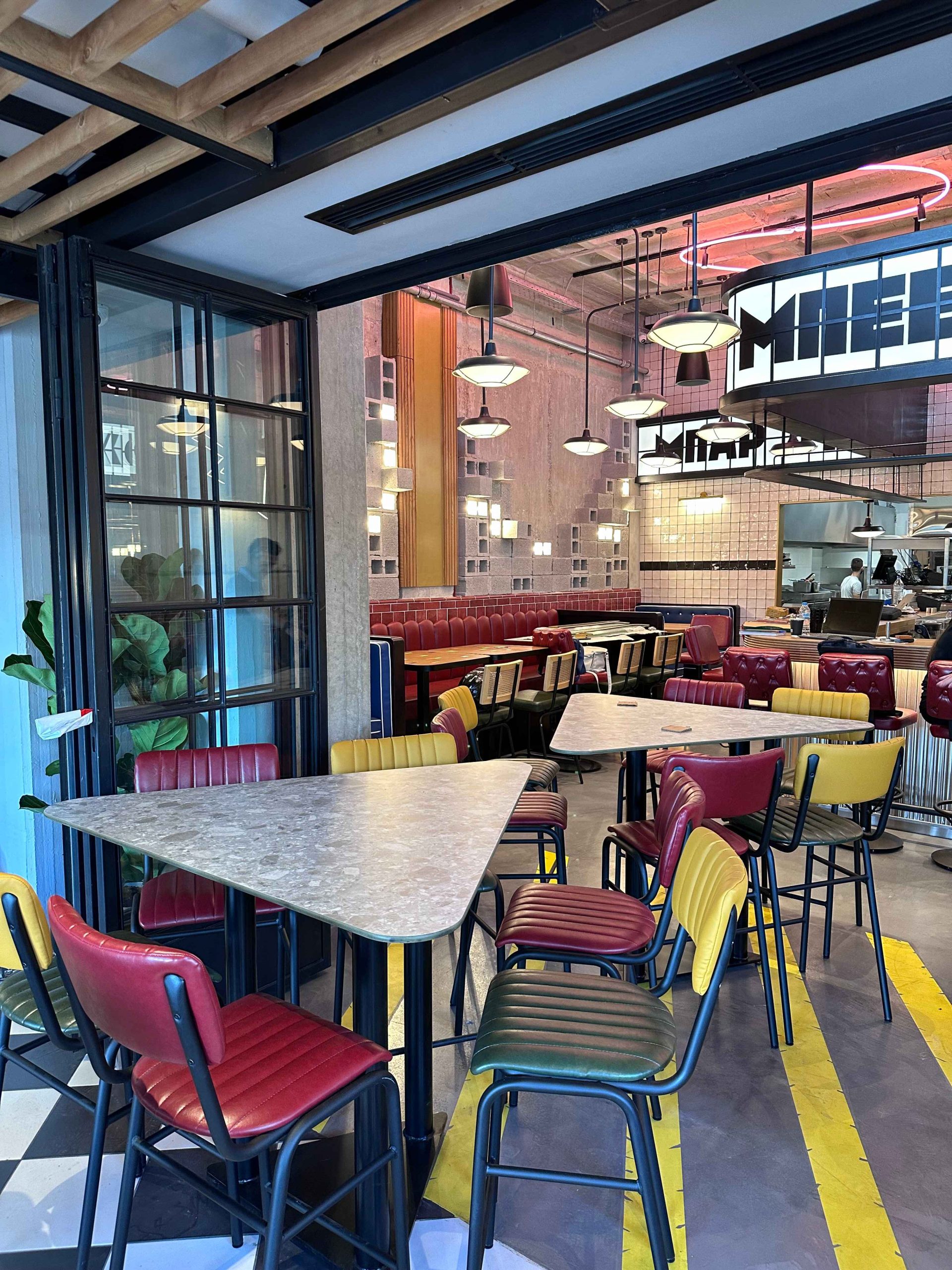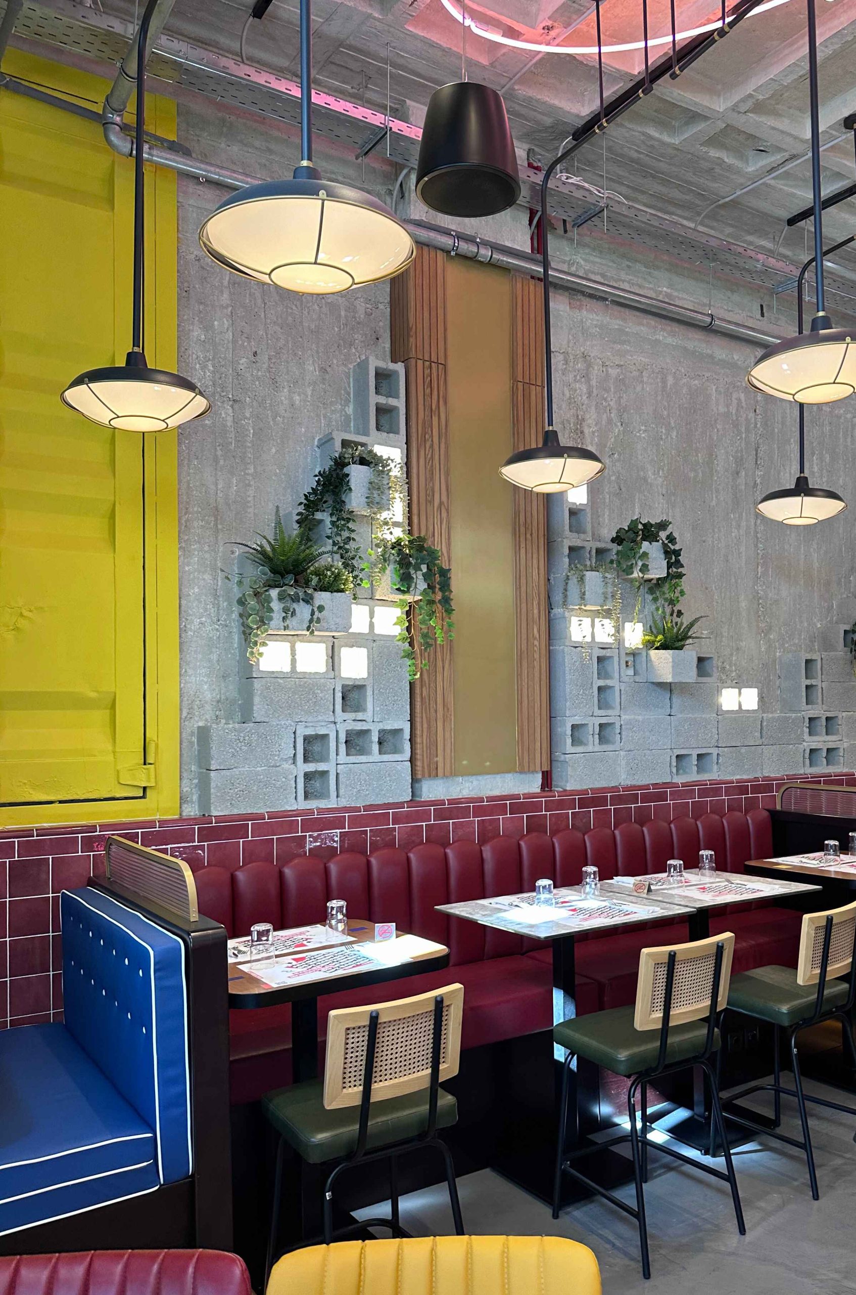 Η πληθωρική διάθεση του brand σε συνδυασμό με μία χιουμοριστική παλέτα χρωμάτων οδήγησε στην αρχιτεκτονική πρόταση του νέου καταστήματος της αλυσίδας.
